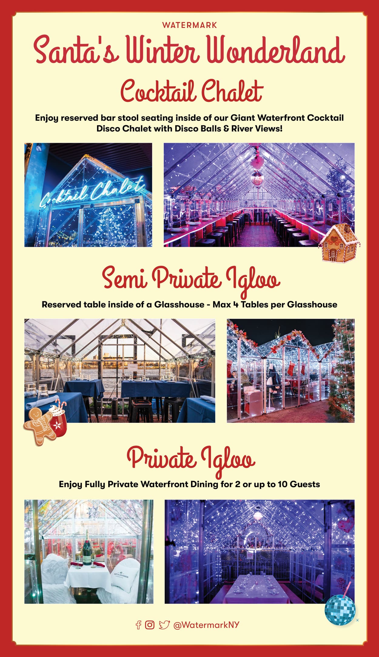 🏠 Glasshouse reservations available for guests who would like to opt for heated igloo seating and dining (1 Entree Included per guest- See MENU)